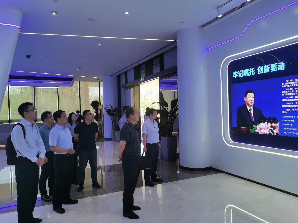 當天上午,調研一行先到秦創原展廳參觀了秦創原創新成果展,王勝軍向一行人作了詳細的講解,全面介紹了秦創原創新驅動平臺總體情況、發展歷程和創新成果,雙方圍繞產業發展、協同創新、校企合作等方面進行了初步交流。在隨后召開的調研座談會上,機電工程學院副院長段學超介紹了學院總體情況,雙方在產學研合作、項目推進、成果轉化等方面開展了綜合研討,并重點就“逐日工程”創新研究院建設等方面進行了深度交流。