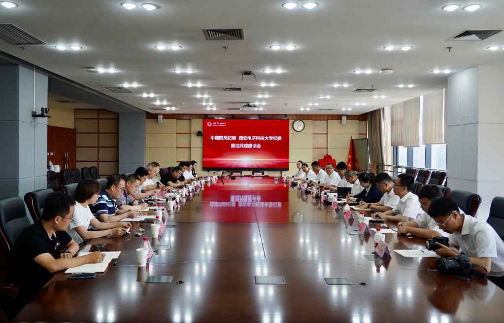 郭俊對劉曉清一行到訪表示歡迎,并介紹了學?;厩闆r。他表示,西電是毛澤東等老一輩革命家親手創建的我黨我軍第一所工程技術學校,紅色基因綿長、學科特色鮮明,主動服務國家戰略需求,在新一輪學科評估、國家重點實驗室重組等方面取得良好成績,在長期辦學中積淀形成了人才培養的“西電現象”。劉曉清對西電的熱情接待表示感謝,并介紹了中建四局的歷史沿革、戰略布局、管理體系和企業文化。雙方就此次聯建活動的內容、舉措進行深入交流,一致認為要以學校單身教師公寓項目為載體,進一步強化聯動監督,一體推進廉潔安全優質文明陽光工程建設。