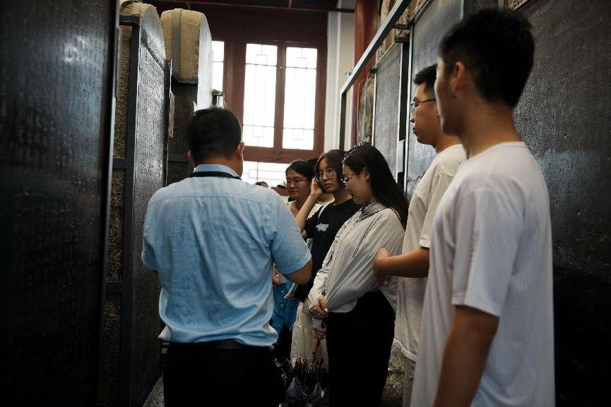 在講解員的帶領下,師生先后觀摩學習了《石臺孝經》《官箴碑》等與廉政文化相關的數十方古代碑刻,通過一個個承載“廉潔”重任的文字、一面面跨越歷史的碑刻,感受孝治、勤儉、修身、公廉等優秀廉政文化的獨特魅力。