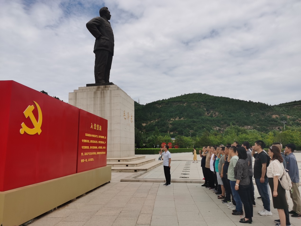 在延安革命紀念館,一張張記載著革命歷史的老照片,一件件透著歲月痕跡的革命紀念品,一幅幅傳承著革命記憶的歷史資料,把大家帶到了那段波瀾壯闊的崢嶸歲月?!皷|方紅,太陽升,中國出了個毛澤東……”熟悉的《東方紅》旋律響起,大家齊聲高唱那首在心中回蕩了千萬遍的頌歌。在濃厚的紅色歷史氛圍中,大家更加深刻認識到革命勝利的來之不易,更加為革命先烈在艱難困苦中始終堅守共產主義信念的初心和不畏犧牲、拋灑熱血的忠貞信仰而震撼。在紀念館前廣場,大家神情肅穆,舉起右手,用飽滿的熱情,有力的聲音,在黨旗下重溫入黨誓詞。