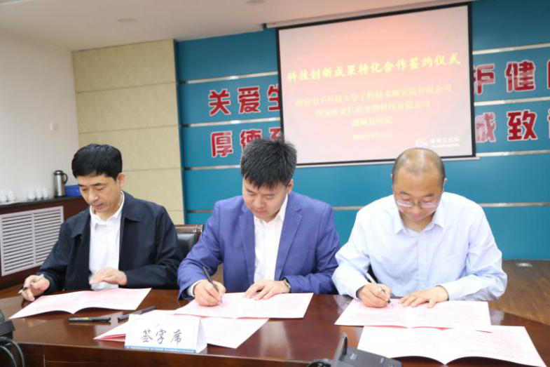會上,胡波對“乳腺癌早期篩查”項目進行了介紹。王華林代表西電資產經營公司向蒲城縣醫院捐贈15萬元用于“乳腺癌早期篩查”項目;王華林代表西電工研院與蒲城縣醫院、西安醫安仁芯公司簽署“科技創新成果轉化合作”協議。