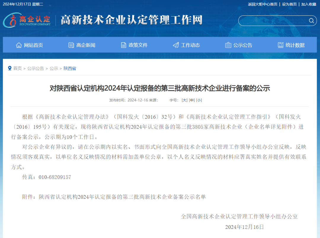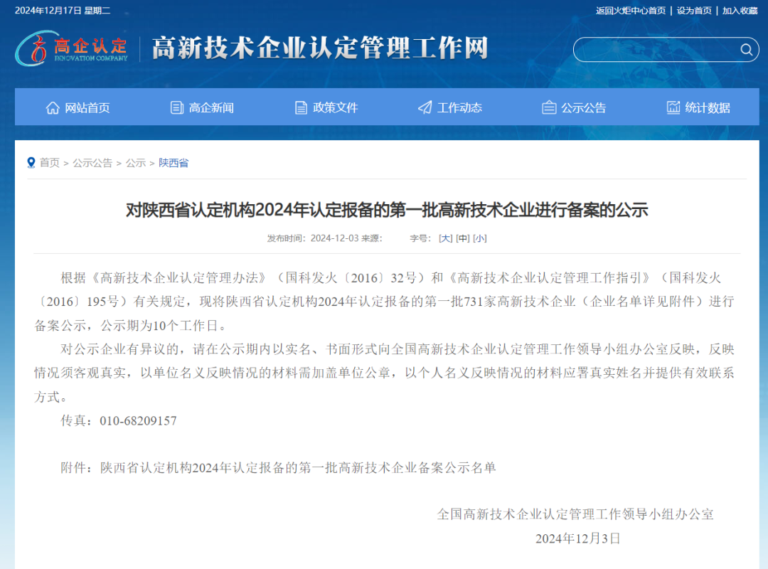 近日,全國高新技術企業認定管理工作領導小組辦公室公示了陜西省2024年第一、二、三批高新技術企業備案名單,西電科技園7家企業通過認定,彰顯了西電科技園在企業培育方面的卓越實力。截至目前,西電科技園擁有28家高新技術企業。